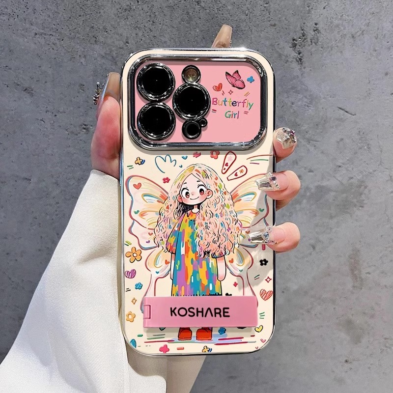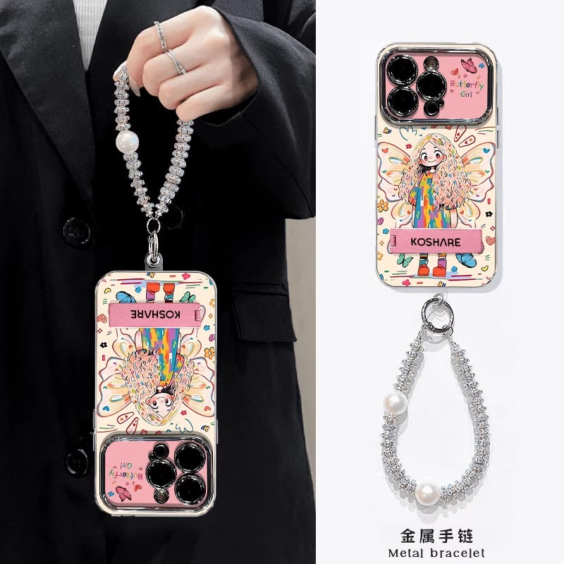 DZ适用苹果16promax手机壳新款潮牌15Pro复古14plus简约创意小众13蝴蝶结涂鸦女孩12电镀11大视窗xr竖纹7防摔