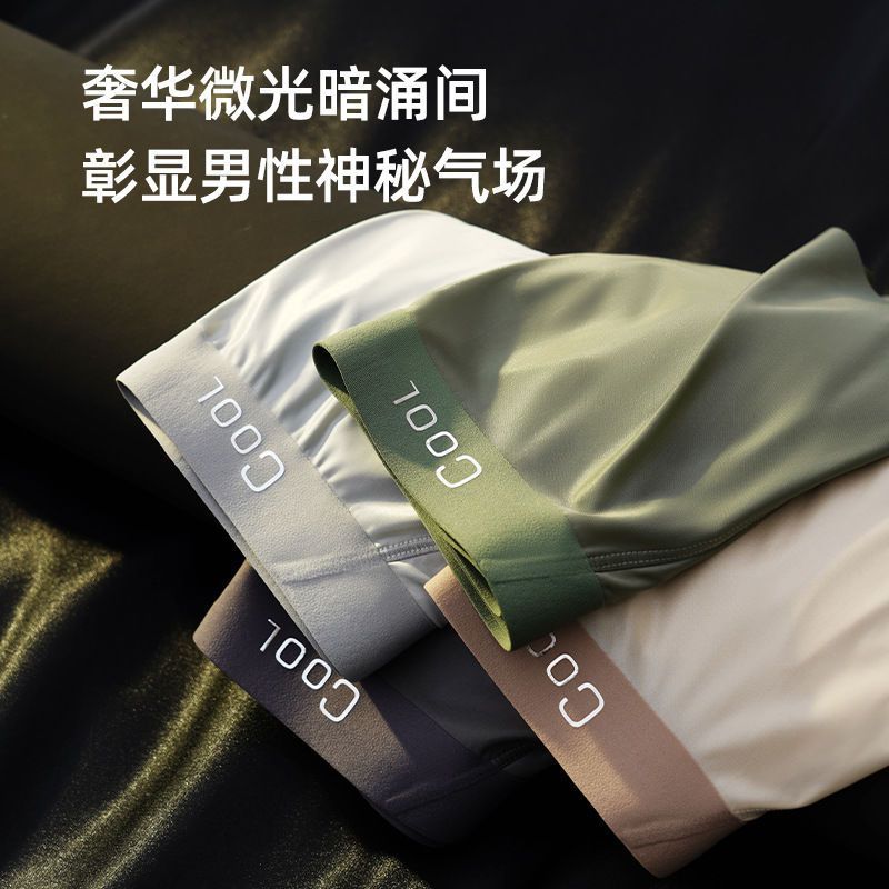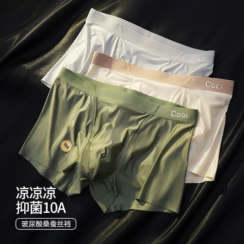 型男10A抑菌桑蚕丝玻尿酸冰感冰丝男士内裤油光缎面轻奢丝滑抗菌