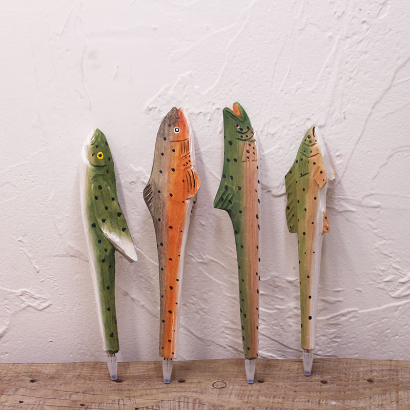 青木凡海洋系列动物木雕笔学生文具原木创意木质礼品笔2只包邮