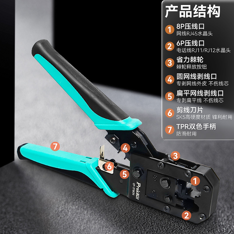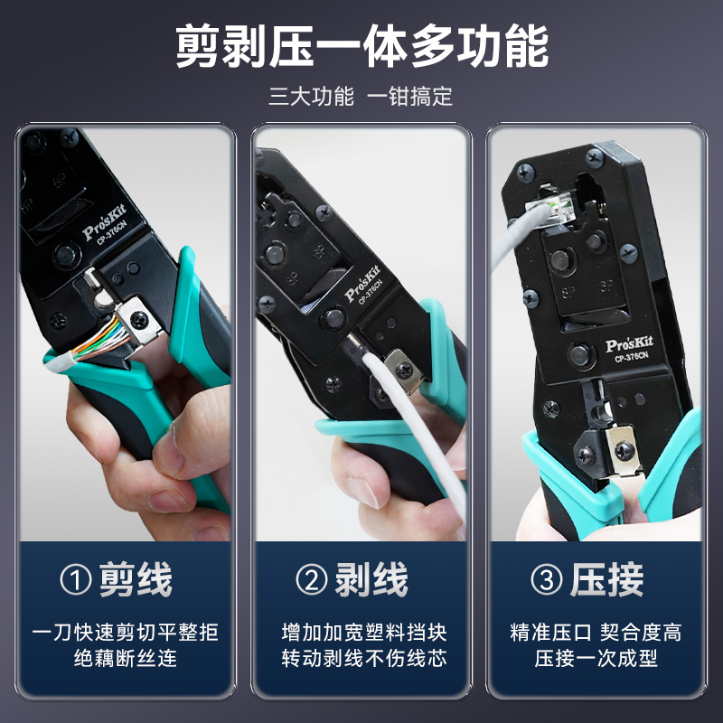 宝工多功能网线钳套装专业级CP-376CN超五类6类电话网络水晶头压线钳6P/8P网线钳子家用宽带线接头制作网钳