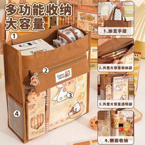 卡皮巴拉补习袋男孩女小学生手提帆布包初中生大容量儿豚鼠拎书袋