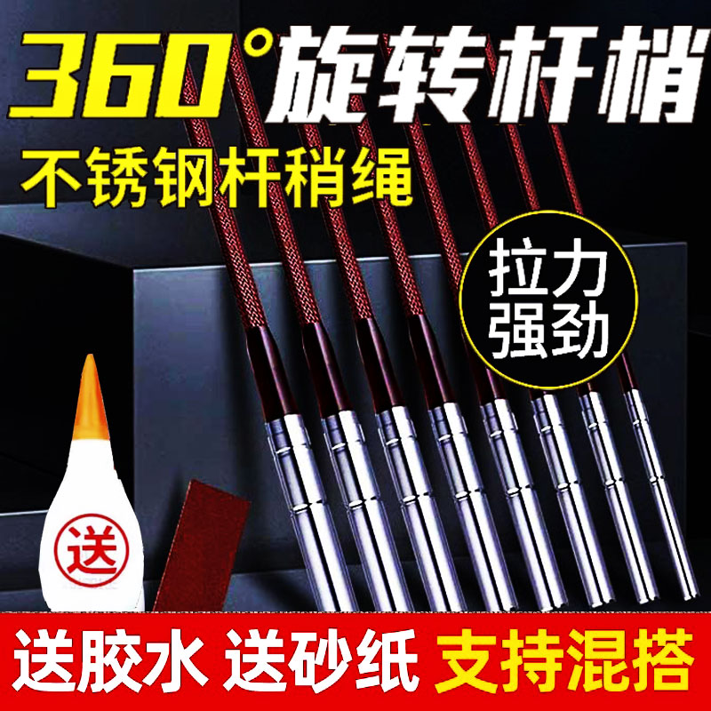 鱼竿头稍绳连接器竿稍转环万向旋转头不锈钢360度鱼杆尖竿稍绳