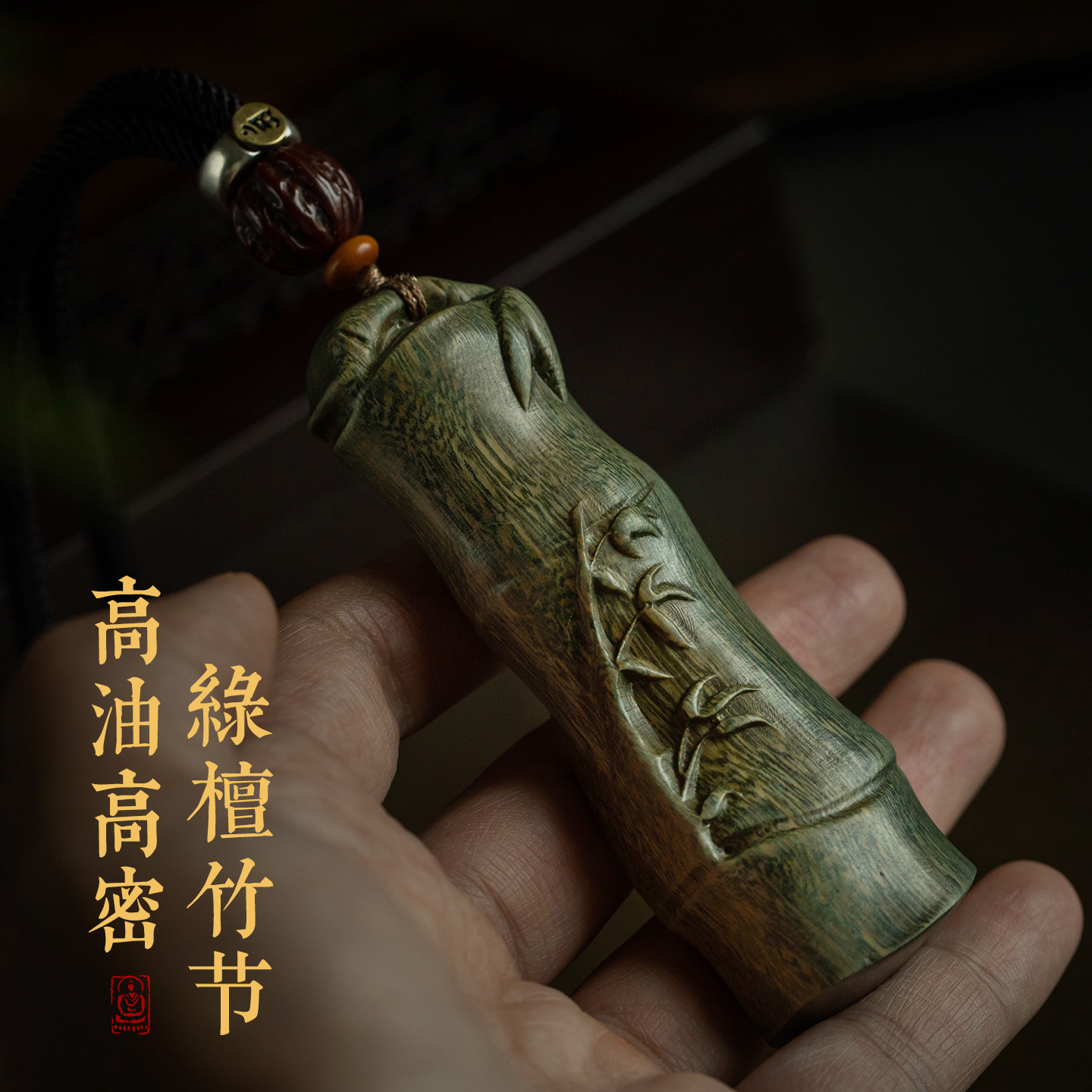 大善堂天然檀木手把件纯银本命佛文玩把玩件竹报平安收藏送礼饰品