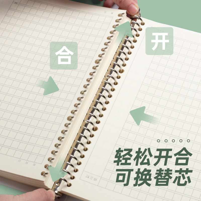 b5活页作文本高颜值可拆卸笔记本本子小学生专用400格300字初中生A4语文本方格本加厚纸线圈作文薄大号作业本