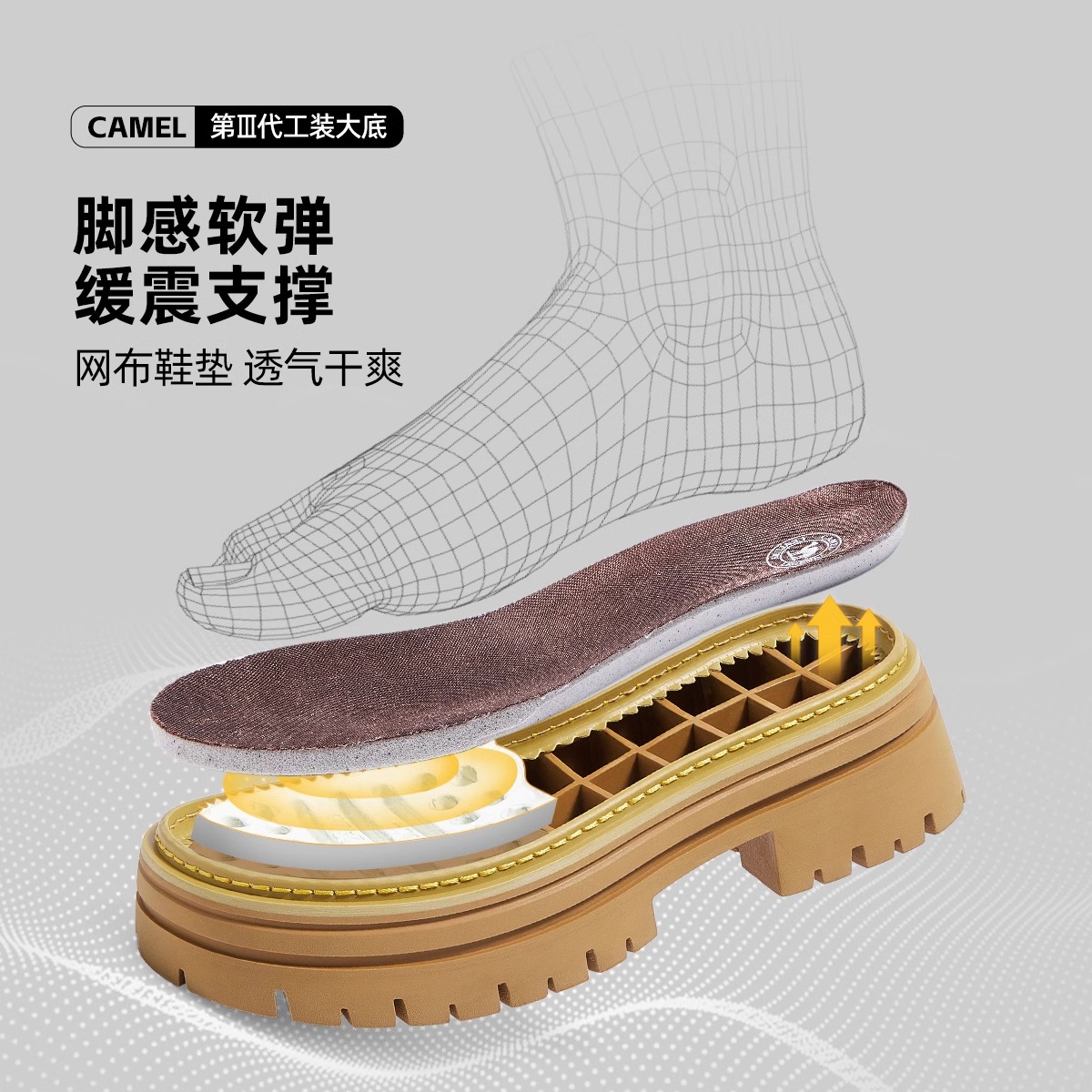 骆驼山越马丁靴女鞋2025秋季新款户外英伦工装登山增高大黄靴子女