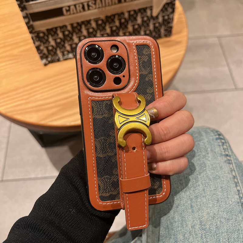高端皮质手腕带苹果14promax手机壳适用新款iPhone16奢华13promax高级感女12全包防摔17带支架15promax保护套