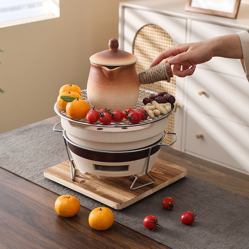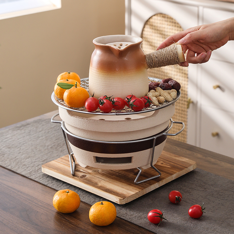 围炉煮茶壶器具家用碳炉罐罐奶茶壶全套烤奶壶户外网红一整套陶土