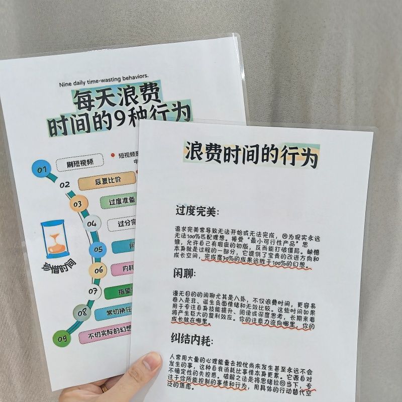 几十年班总主任总结学霸是规划出来的+浪费时间9种行为塑封明信片