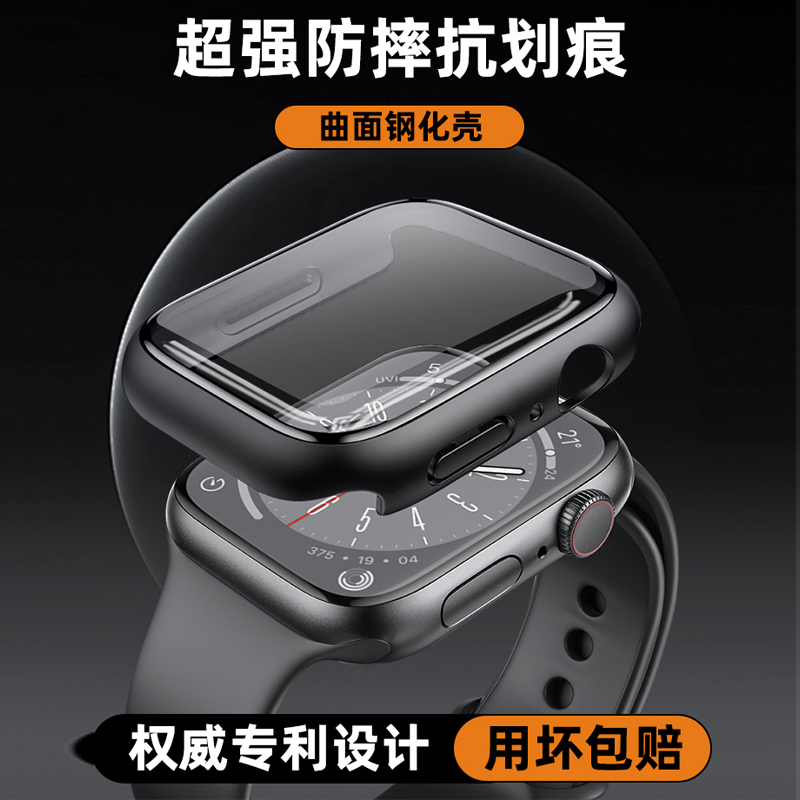 适用applewatchS11苹果9手表S10保护壳iwatch10保护套S8壳膜一体8保护膜曲面SE钢化S7表套6防刮表壳5全包防尘