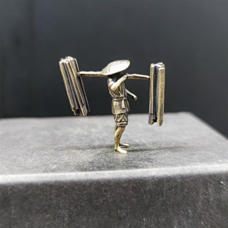 黄铜 下山挑夫 挑柴老人 小人农夫微模鱼缸造景微距沙盘布景摆件