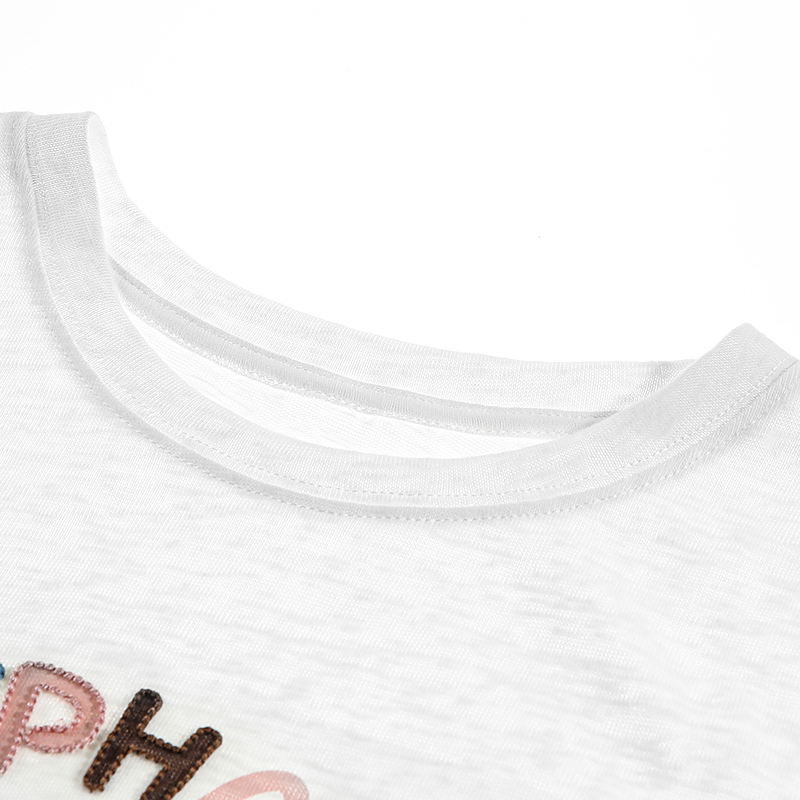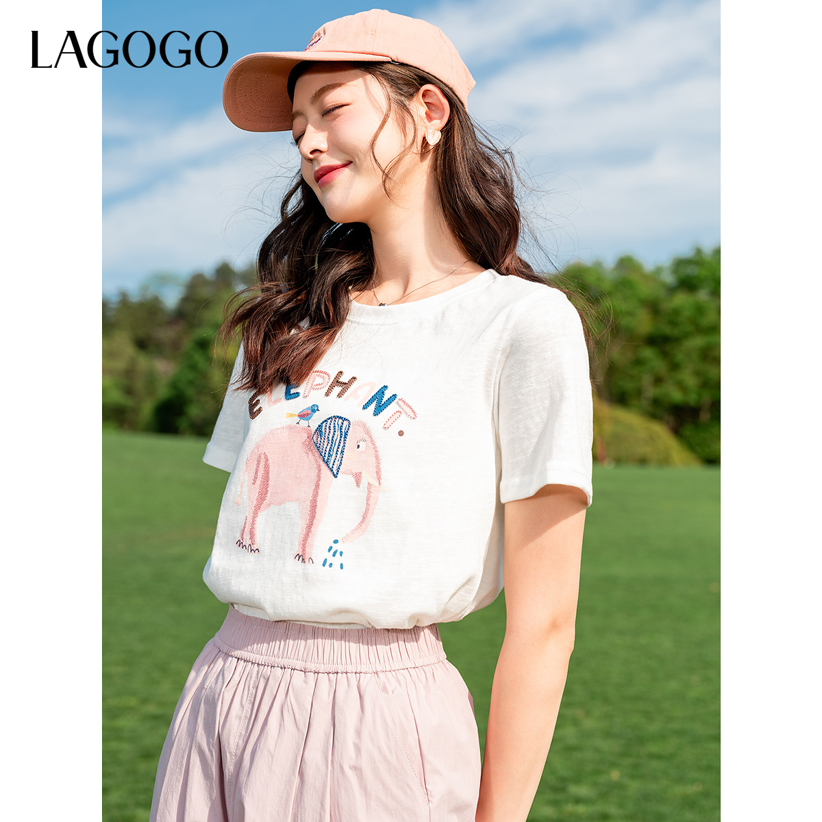 LAGOGO大象刺绣独特正肩T恤女拉谷谷2025年夏季新款透气白色短袖