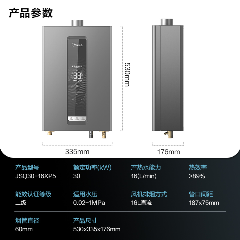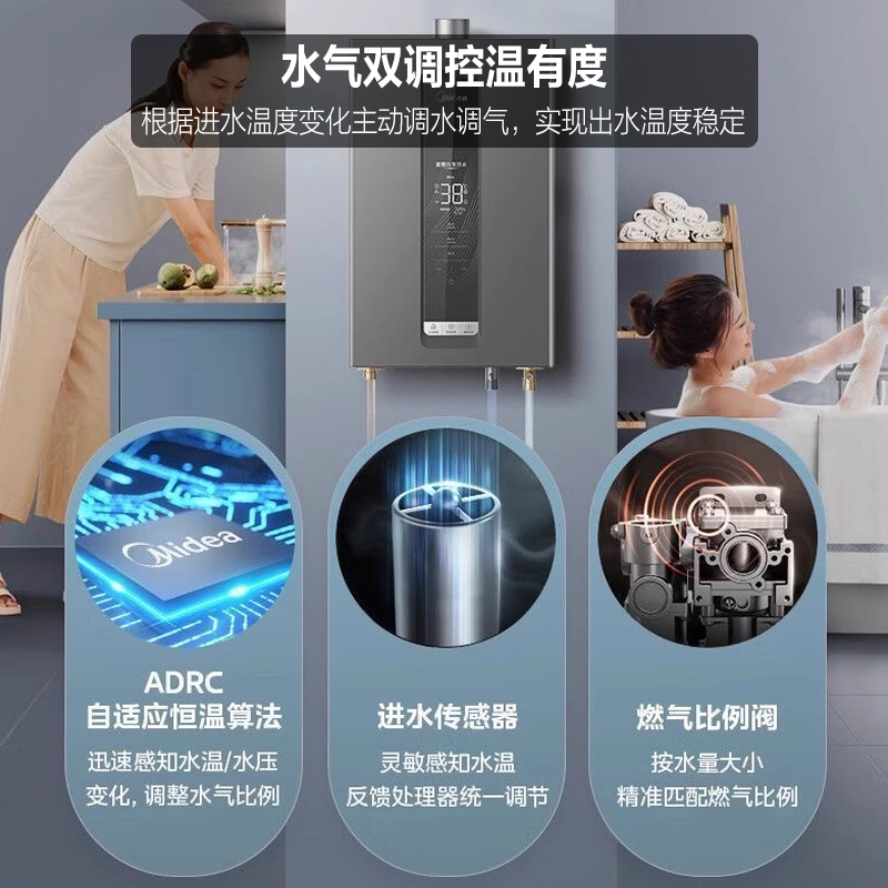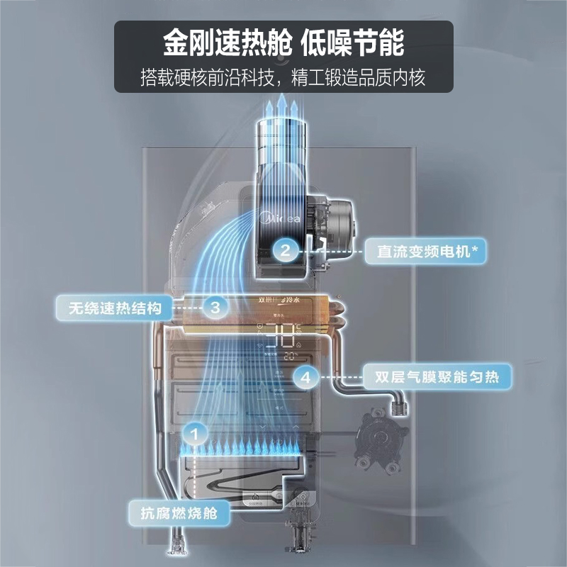 美的燃气热水器家用天然气双增压零冷水恒温16升智能官方旗舰店