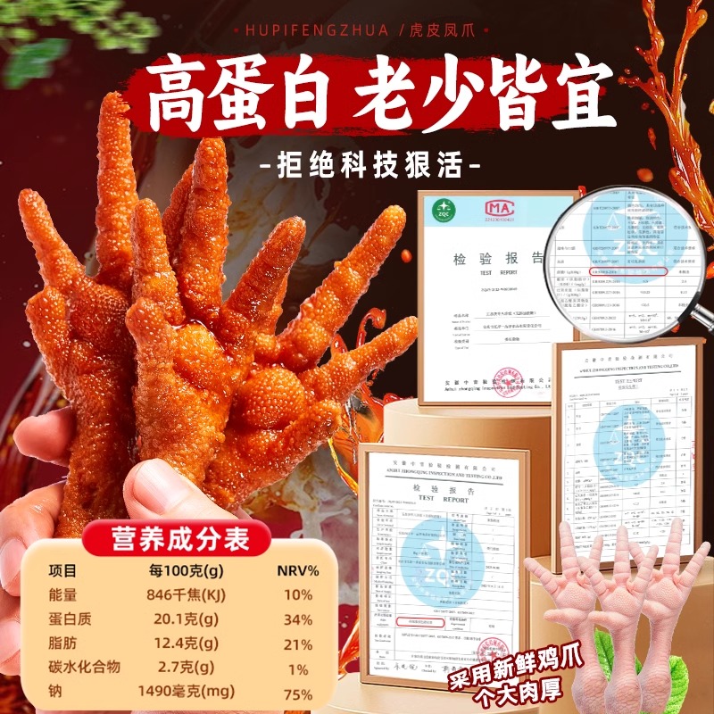 虎皮凤爪卤味鸡肉零食小吃解馋鸡爪夜宵充饥即食下酒菜辣味香辣