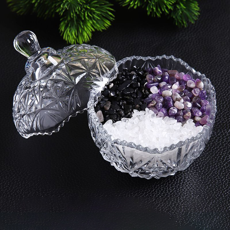 天然紫白黑水晶碎石摆件手链消磁石饰品容器收纳盒器皿消磁碗
