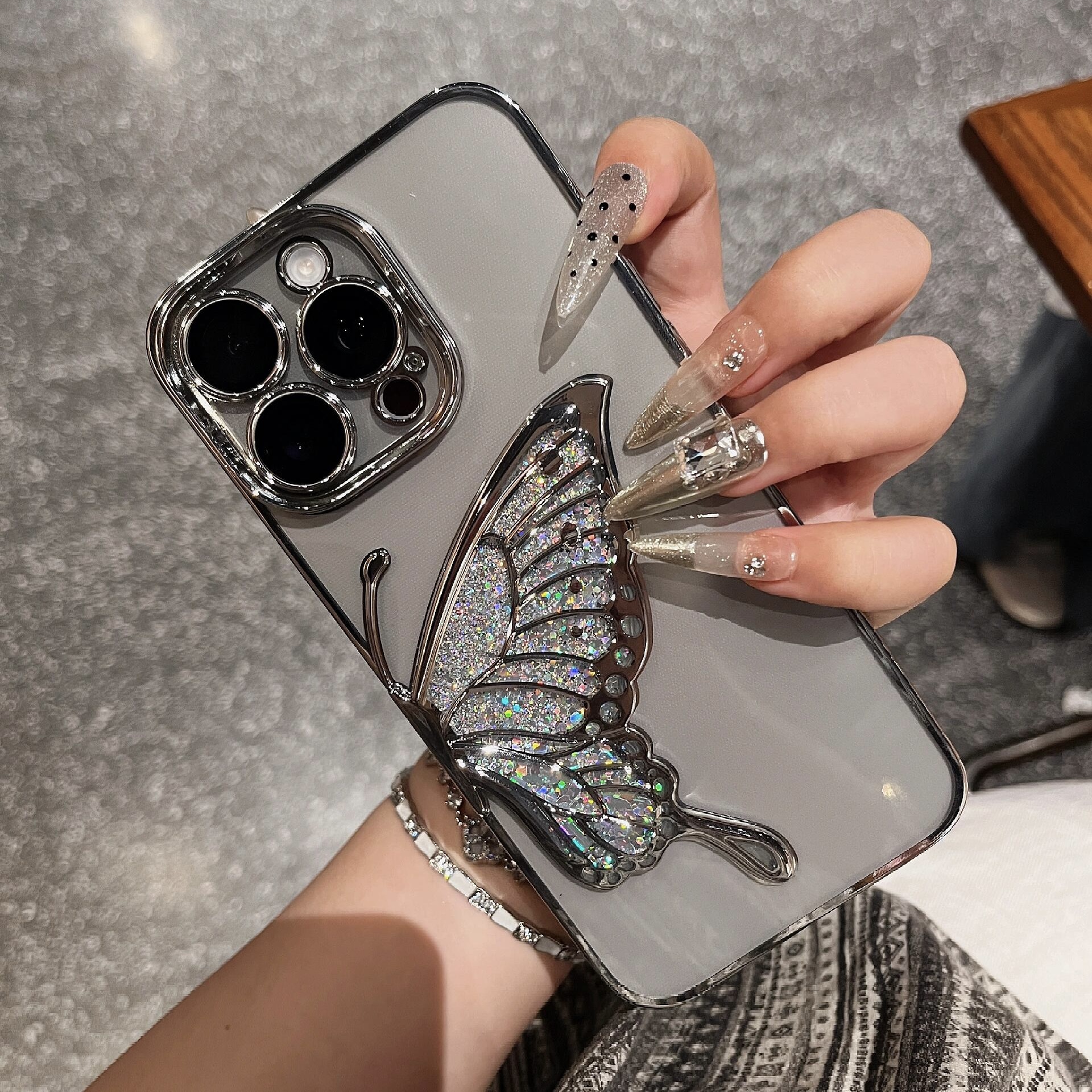 流沙蝴蝶iPhone16Promax透明高级感女生手机壳苹果15Pro电镀全包防摔适合夏天的手机壳ins风ip14自带镜头膜