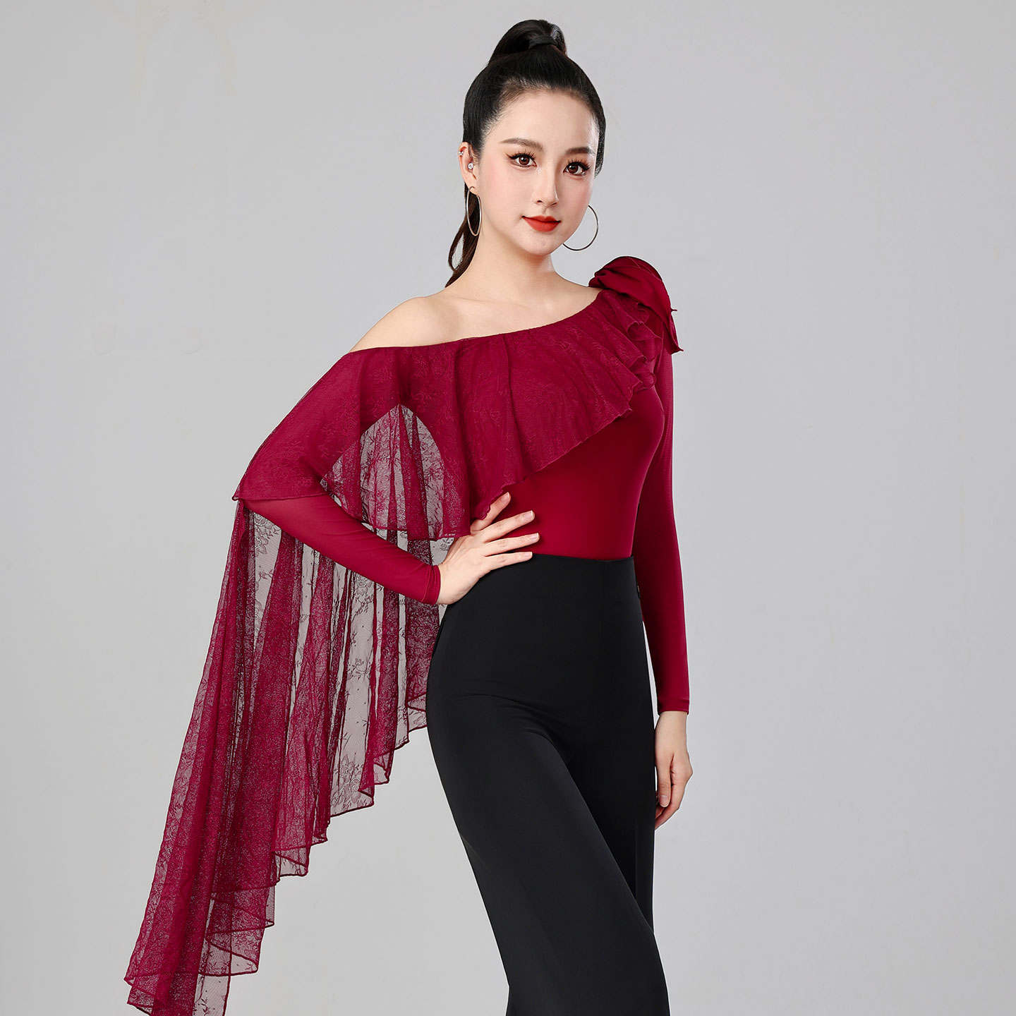 丹宝罗拉丁舞上衣时尚斜肩女连体衣高端大气上档次舞衣交谊舞上装