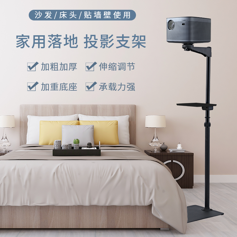 长颈侠家用床头落地款投影仪支架免打孔当贝极米坚果小米投影机通用青春版置物架靠墙投影机托盘架子落地支架