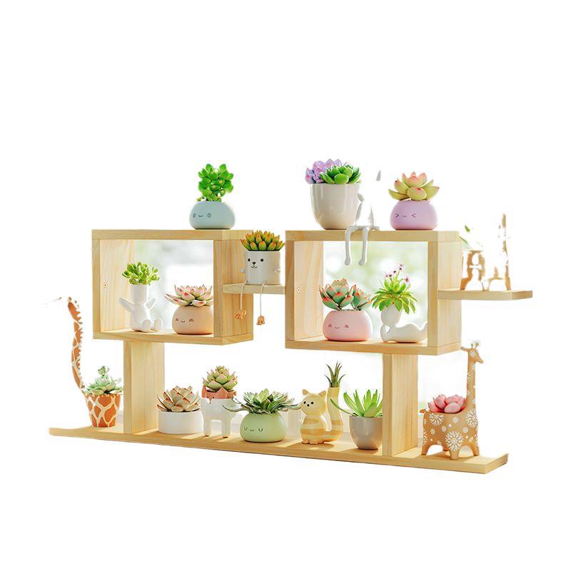桌面多层小花架多肉实木飘窗阳台客厅办公室花盆架子置物装饰绿植