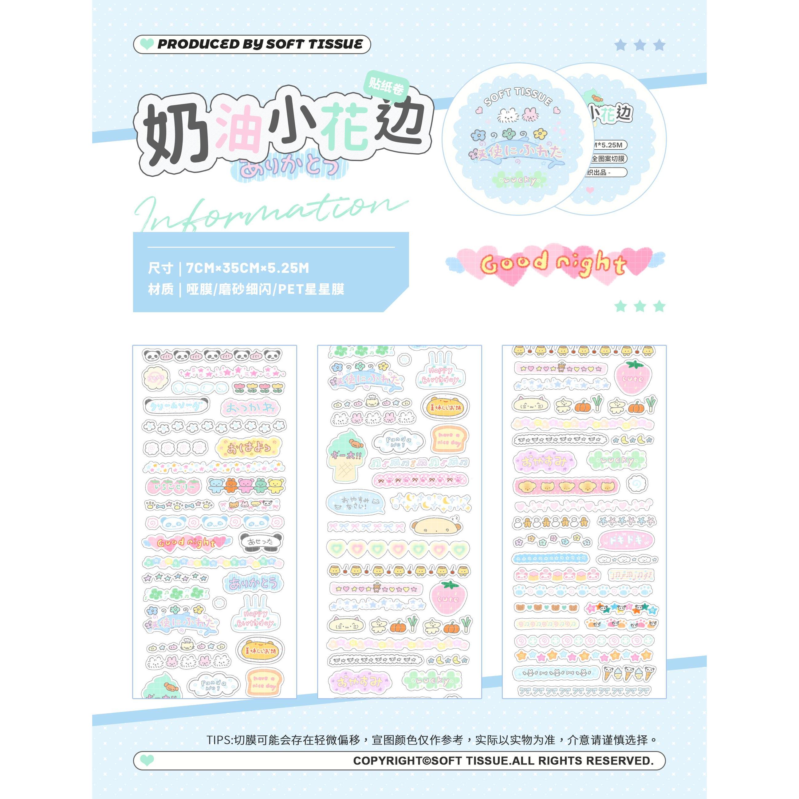 软组织新品分装原创奶油小花边贴纸卷手帐切膜胶带deco贴纸韩系
