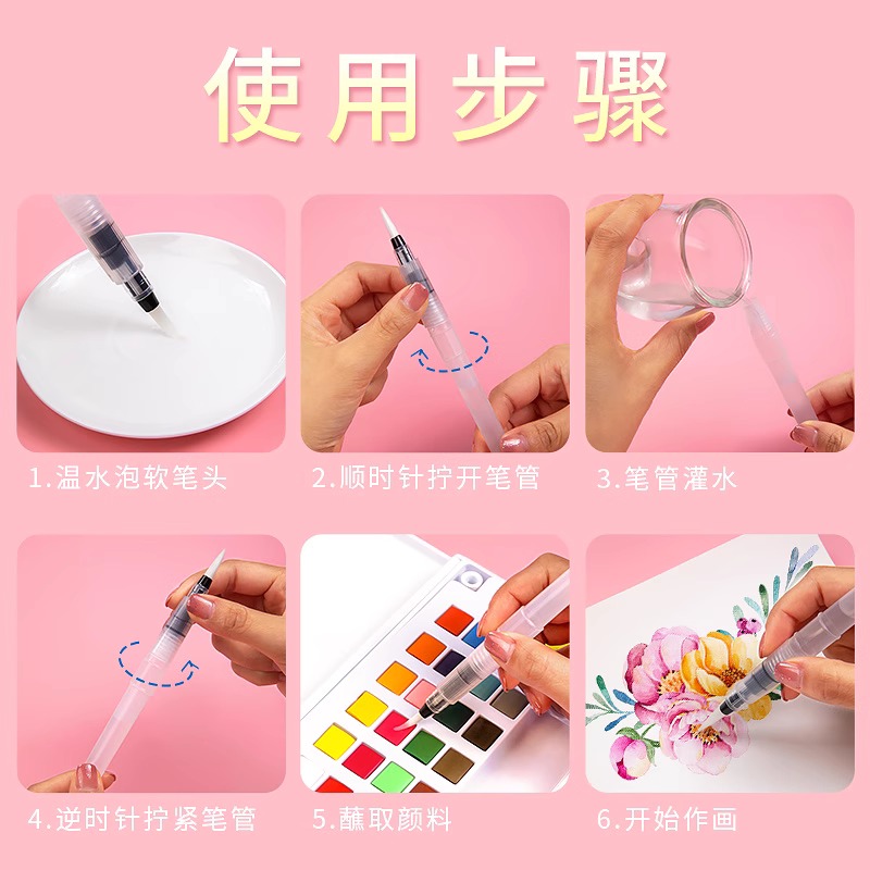 自来水笔套装水彩水粉注水式大容量软头笔初学者美术学生绘画手绘