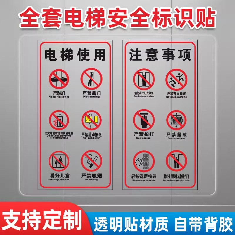 电梯安全标识贴纸透明PVC标签警示贴小区物业双门电梯内安全标识标识乘坐客梯使用须知提示贴标志牌