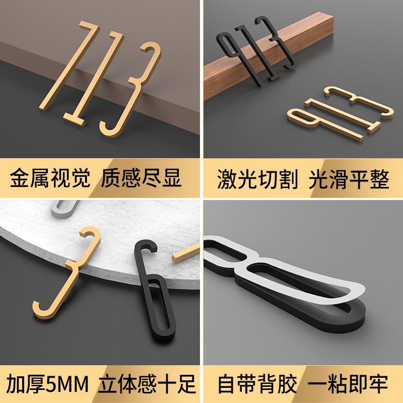 高档3d立体简约数字门牌号码牌轻奢北欧风入户门号牌房间数字定制
