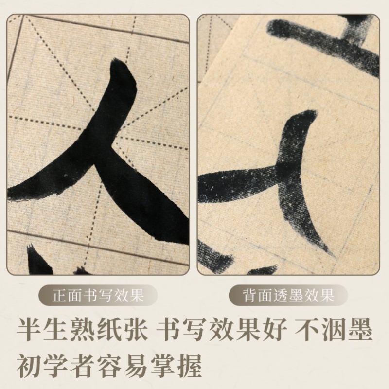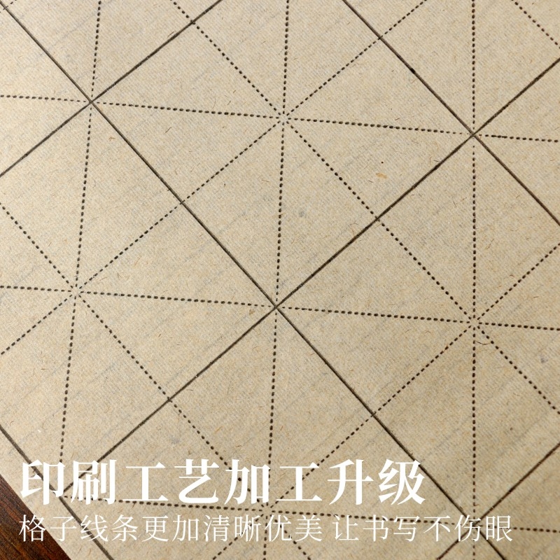 仿古手工毛边纸米字格复古竹麻纸宣纸书法练习专用纸加厚竹浆带格子半生半熟软笔练毛笔字纸初学者练字用纸