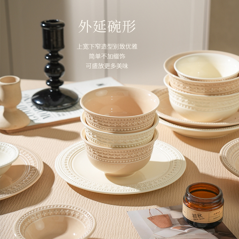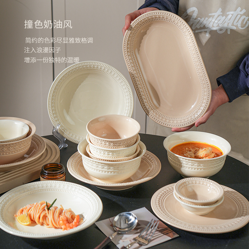 法式奶油风陶瓷碗餐具碗盘套装吃饭碗高颜值轻奢汤碗家用2025新款