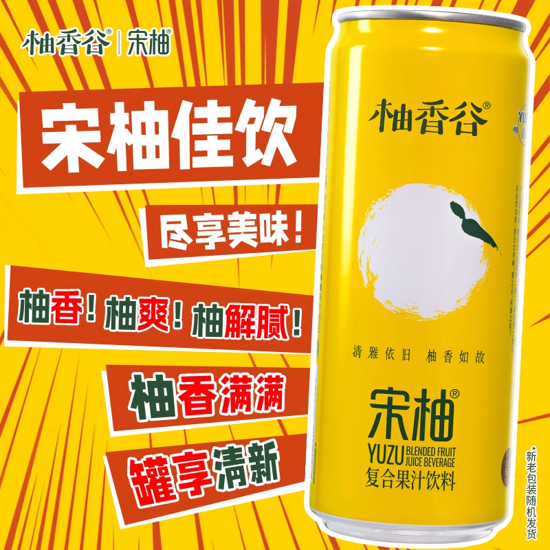 柚香谷宋柚汁300g易拉罐装解腻柚常山胡柚果汁饮料整箱饮用汽水