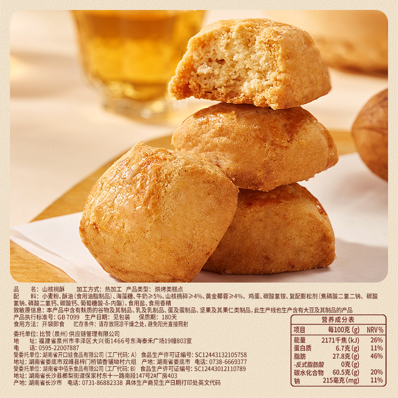 比比赞山核桃酥官方小吃美食传统点心零食休闲食品小吃大全批发BY