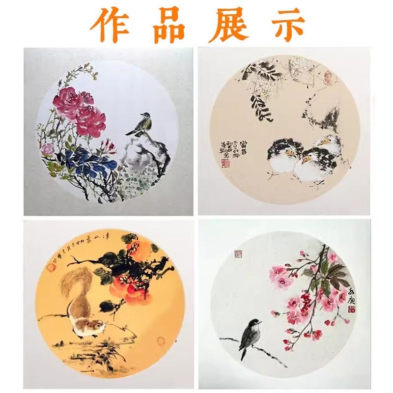 宣纸卡纸国画书法空白生宣加厚软卡圆形镜片作品纸工笔画熟宣方形半生半熟儿童绘画书法作品宣卡半生熟初学者