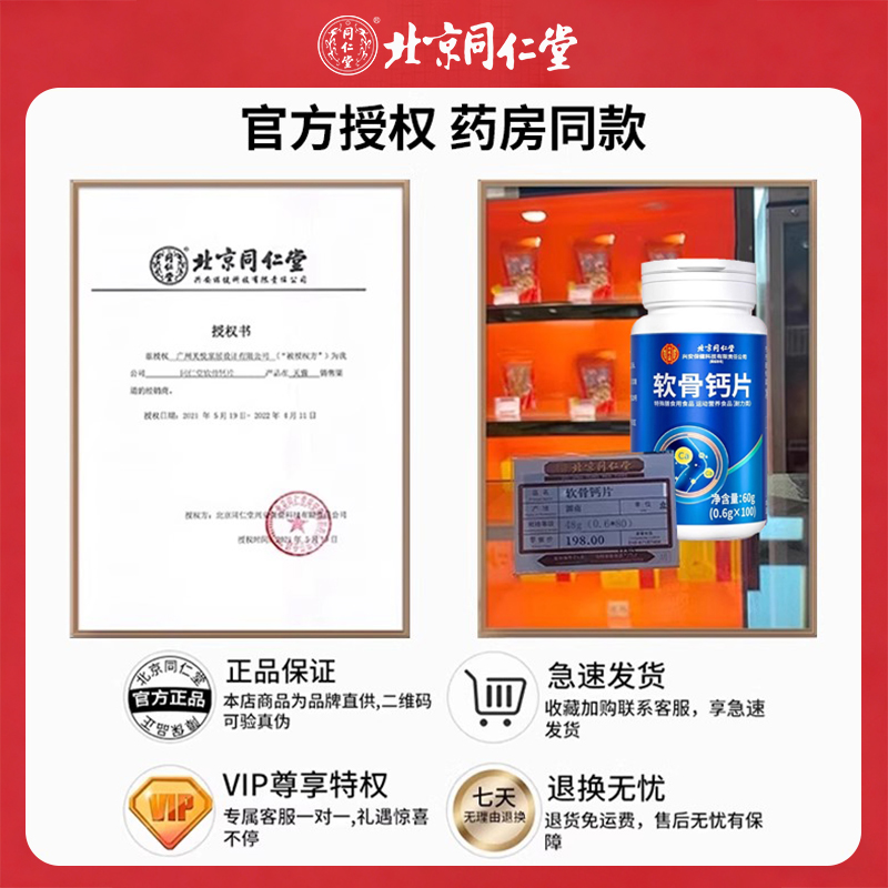 北京同仁堂软骨钙片正品官方旗舰店中老年人腿抽筋腰腿骨质疏松fc