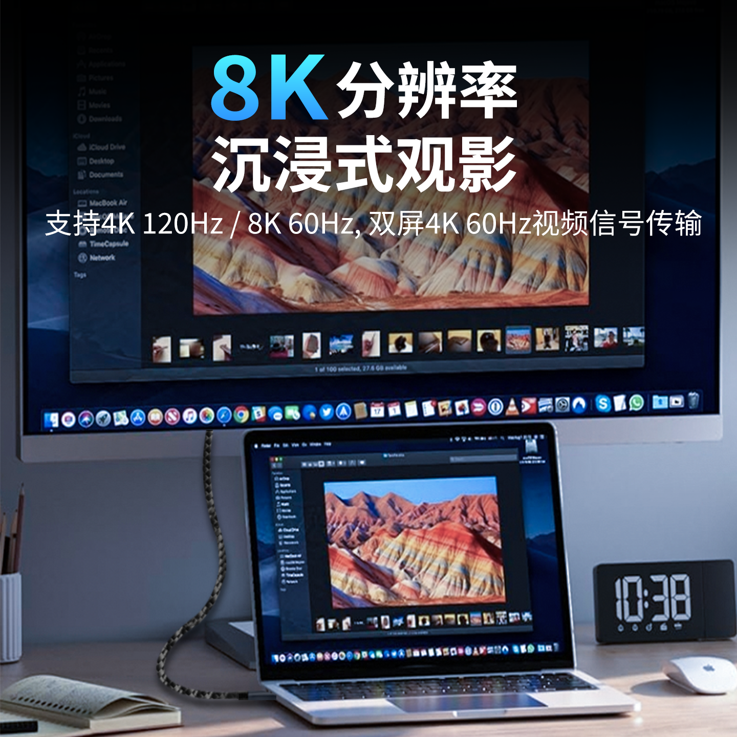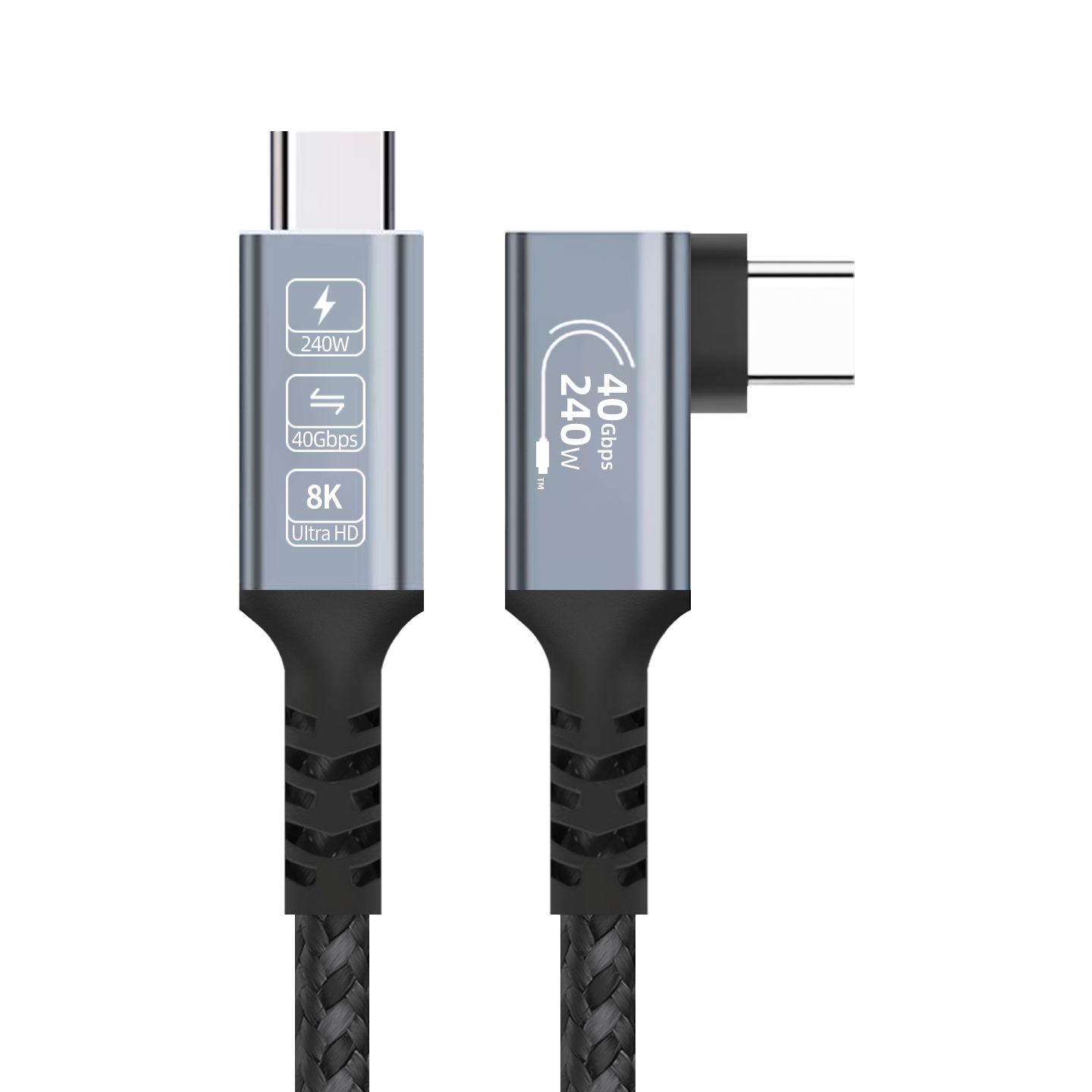 USB4全功能数据线双头Type-c弯头240W快充线8K高清线40gbps传输typec公对公适用雷电4/3手机平板笔记本电脑