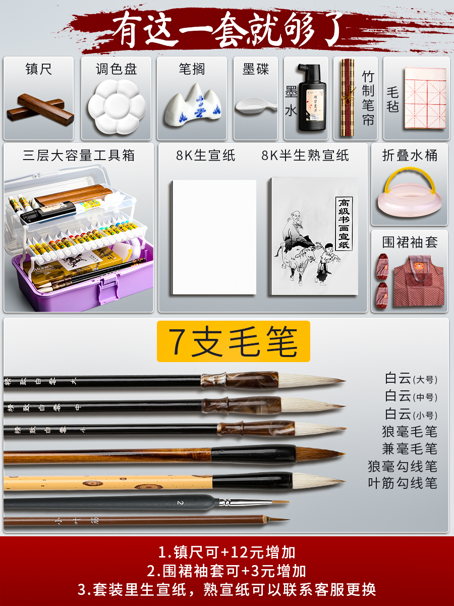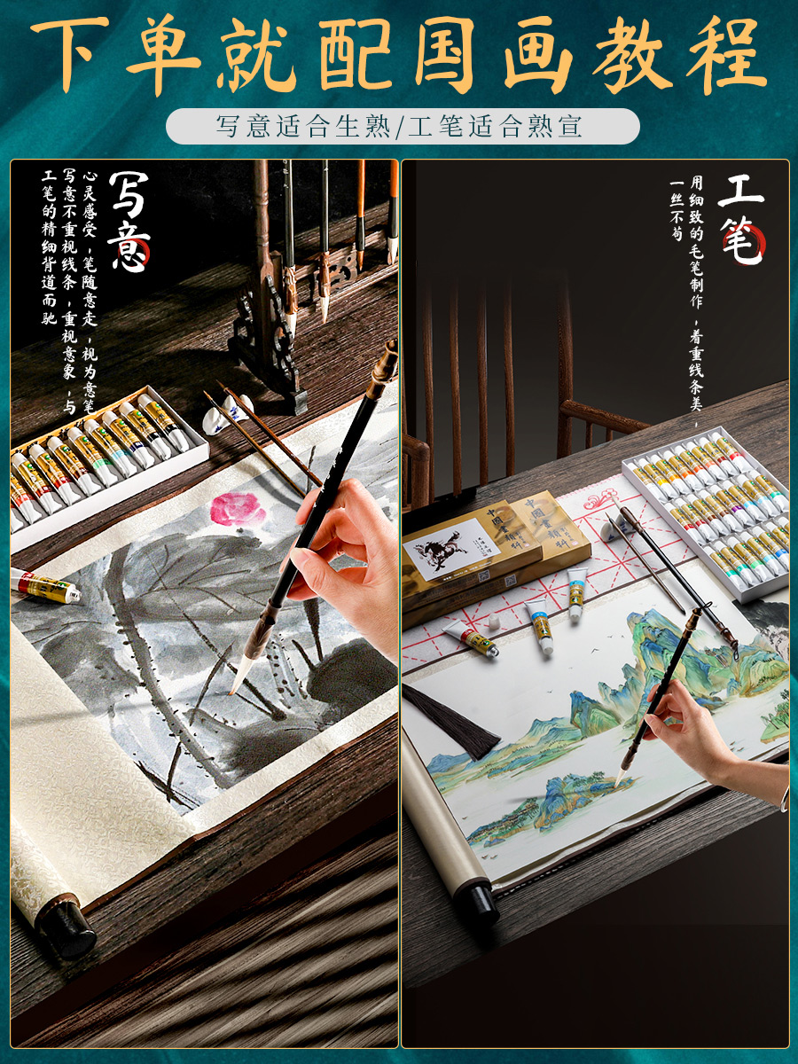 马利牌中国画颜料套装全套紫色工具箱初学者24色36色专业国画用品