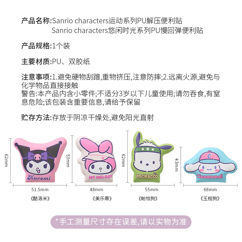 miniso名创优品三丽鸥PU慢回弹便利贴可爱高颜值有粘性学生标签贴
