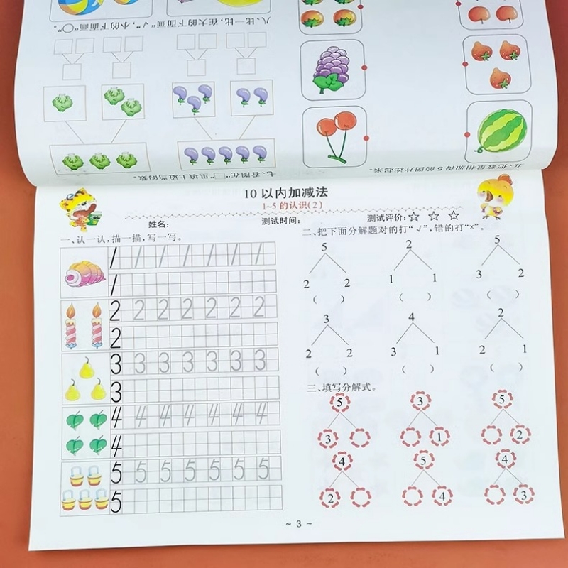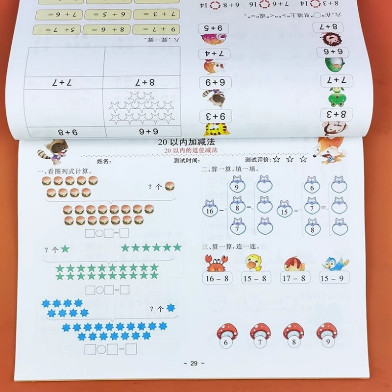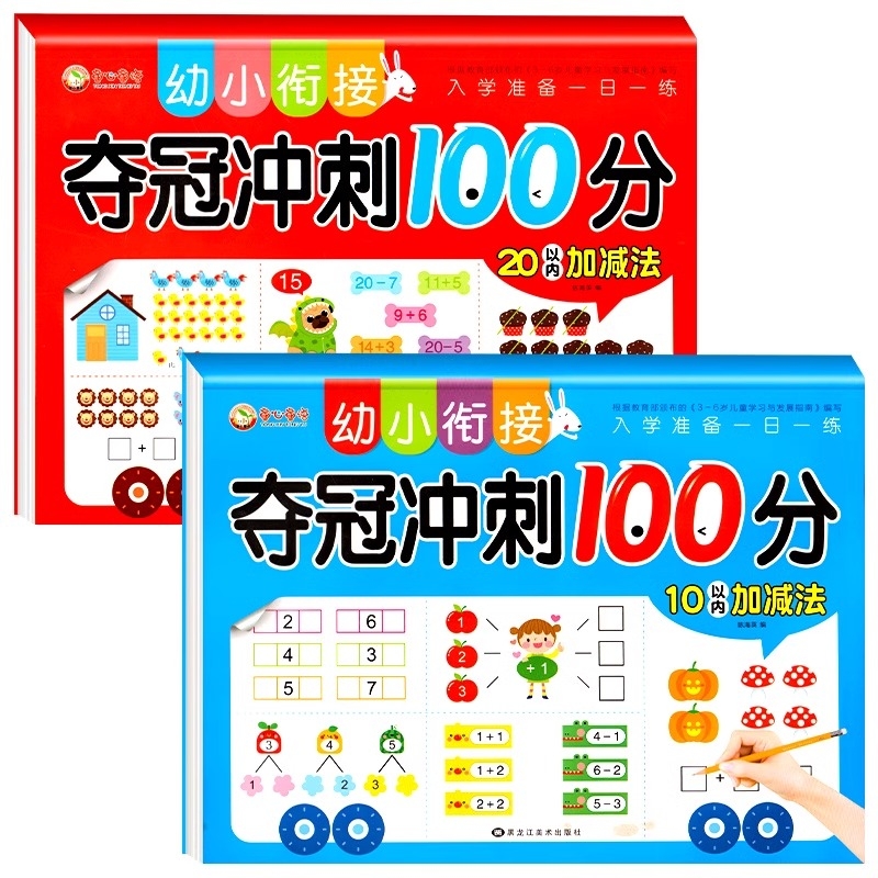 幼小衔接数学10/20以内加减法口算题卡天天练3-6岁找规律看图连线书幼儿园中大班数学早教启蒙训练分解与组成看图列式计算入学准备