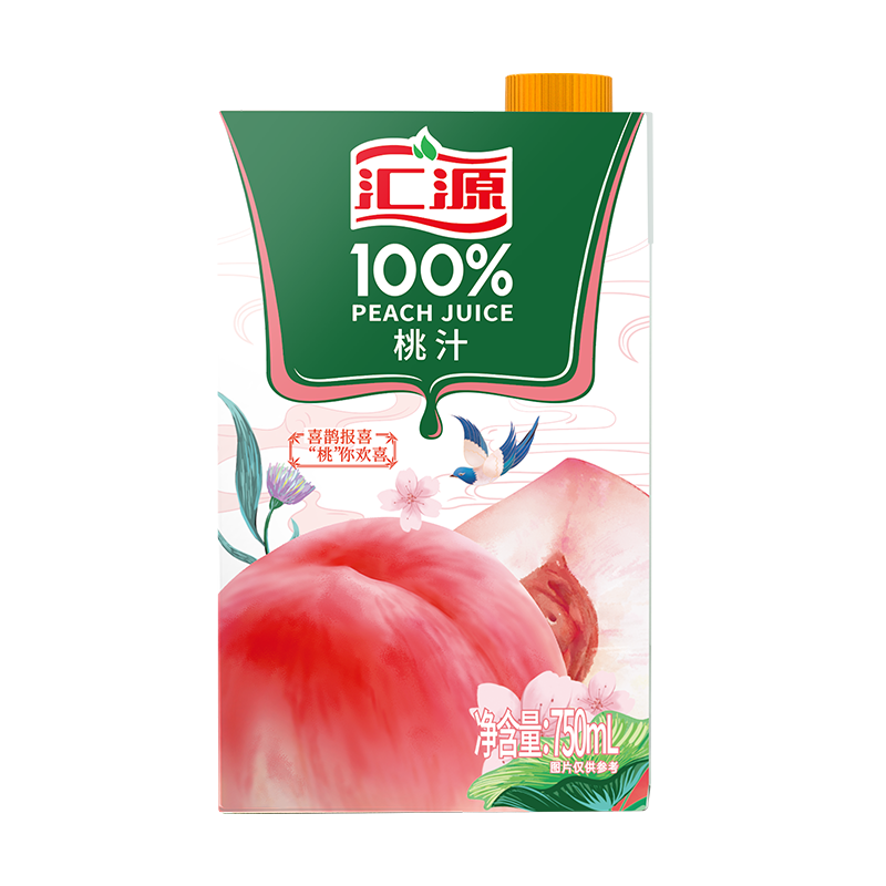 汇源100%桃汁750ml*2盒浓缩果汁饮品鲜果饮料