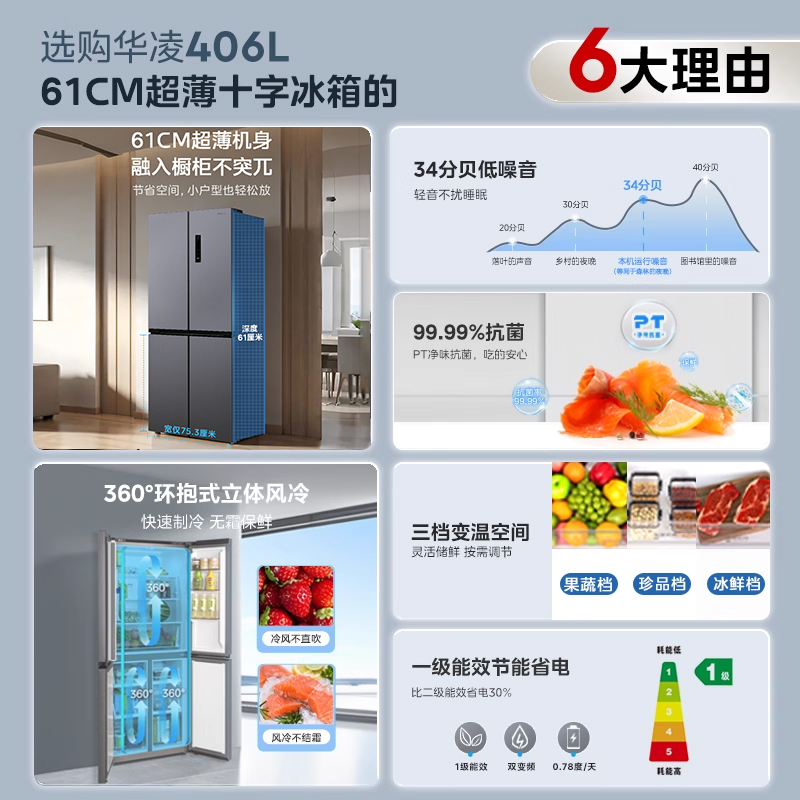【李佳琦直播间美妆节】海尔539L双开四门一级能效电冰箱