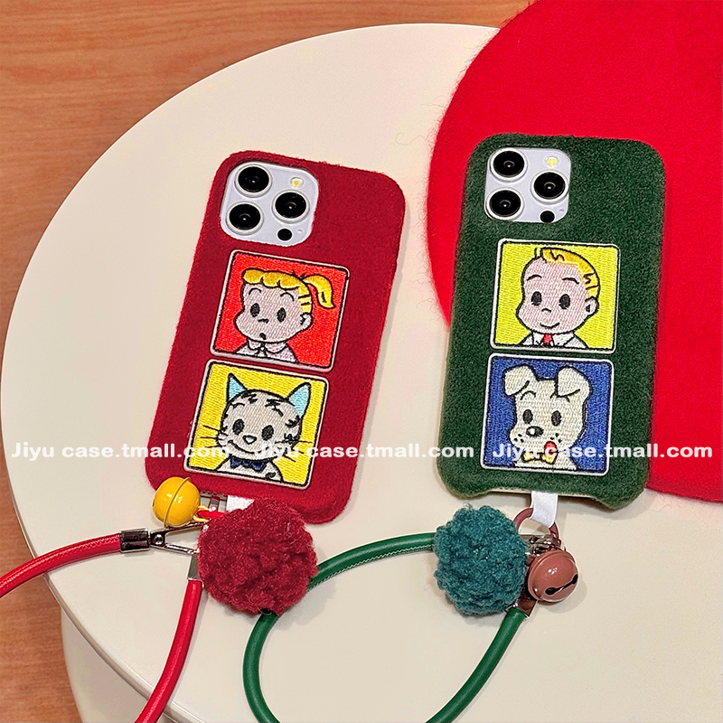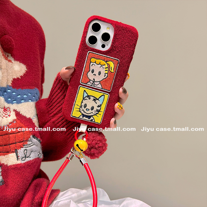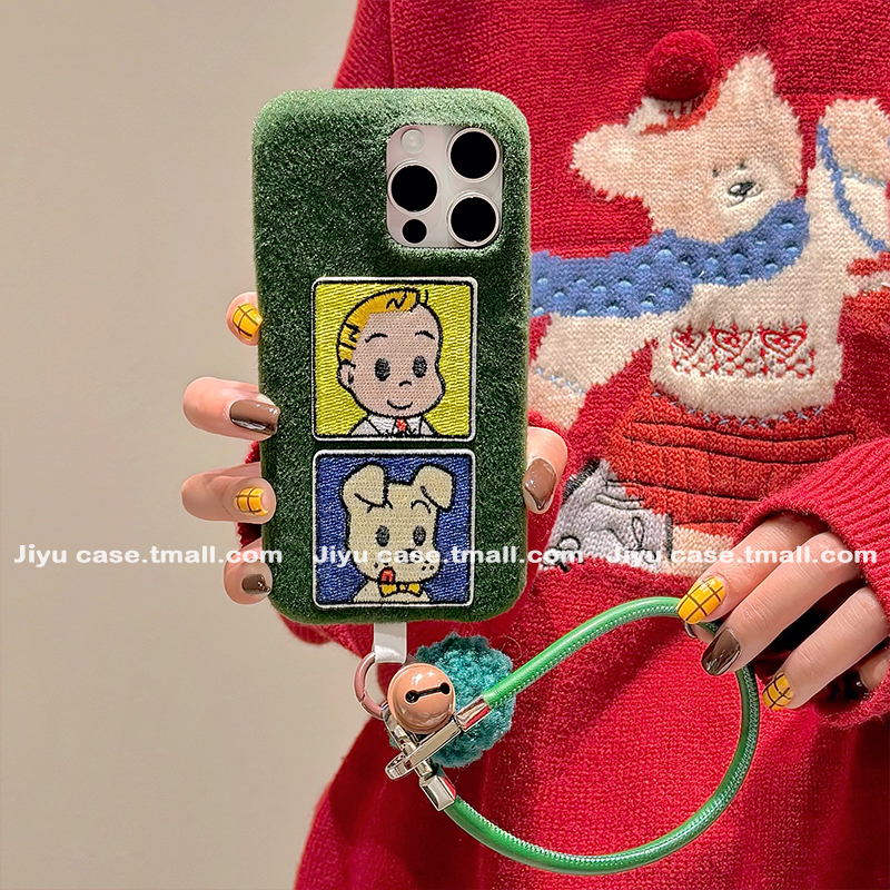 趣味卡通立体刺绣原田治适用苹果16promax手机壳iPhone15新款14pro带挂绳13小众女16pro秋冬15pm高级感12全包