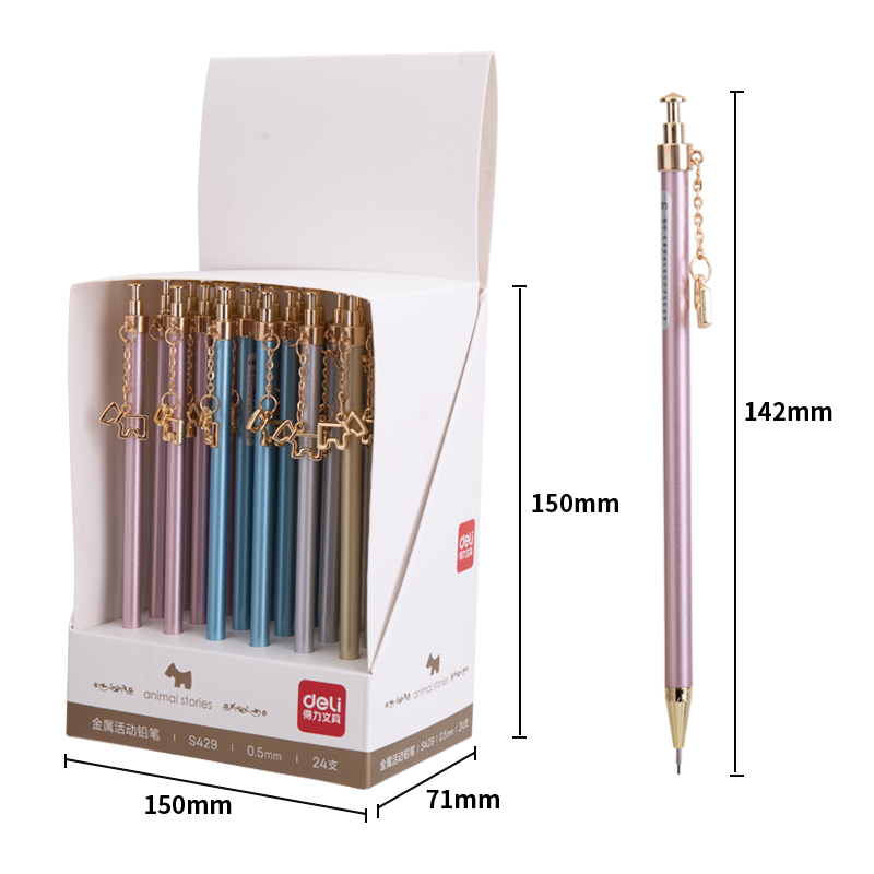 得力自动铅笔0.5mm儿童小学生用金属细杆小清新卡通活动铅笔0.7mm制动铅笔写不断糖果色可爱女孩彩色书写铅笔