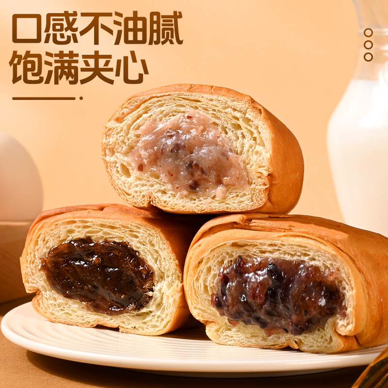 巧克力味可颂牛角包夹心紫米面包整箱早餐食品独立小包装营养学生
