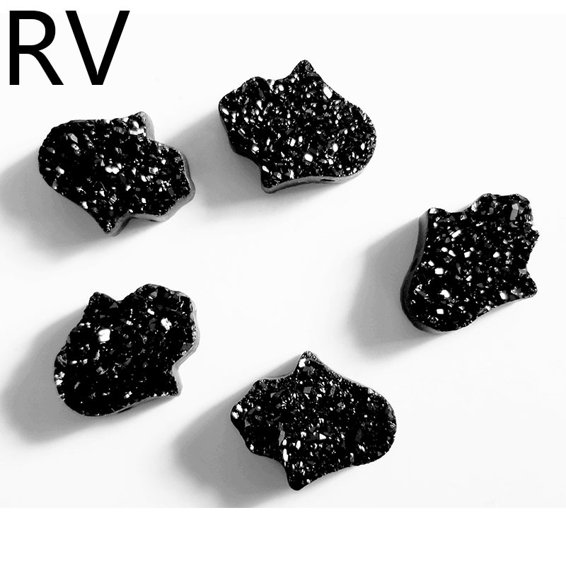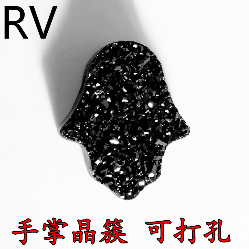 外贸druzy 11*13mm手掌形水晶簇裸石通孔 晶洞石头配件DIY
