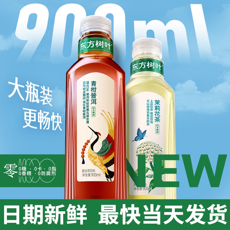 东方树叶900m/500ml大瓶装青柑普洱茉莉花茶乌龙无糖茶饮料