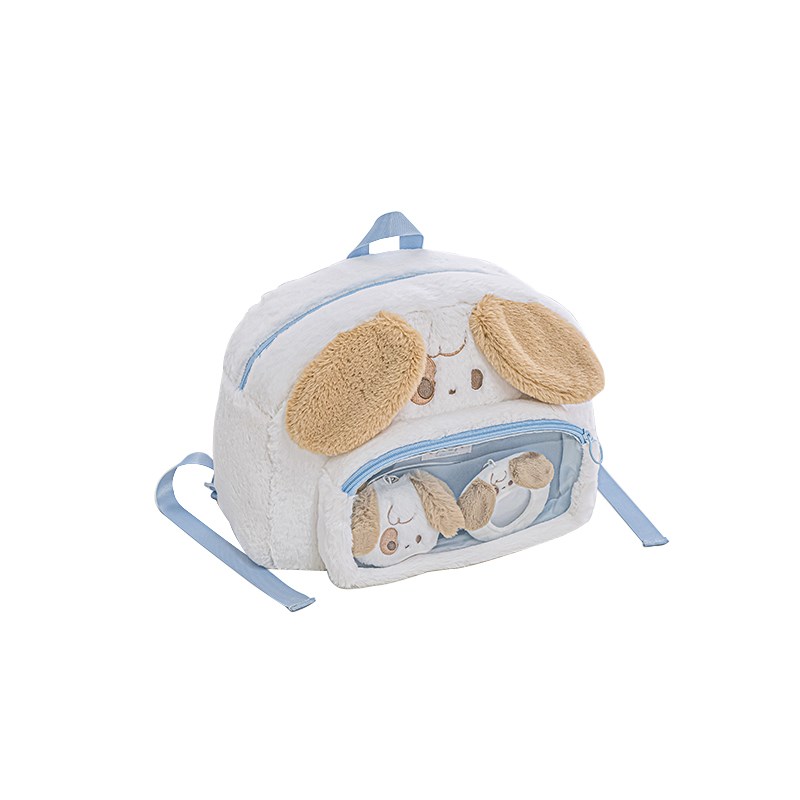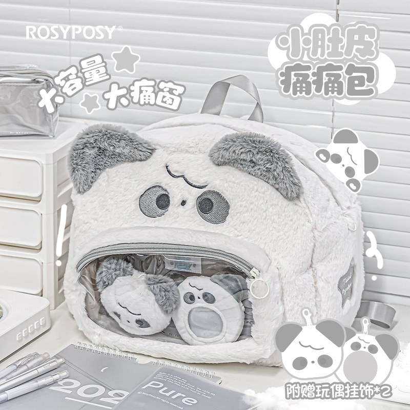 柔设毛绒紫色透明吧唧痛包双肩包软乎乎学生背包书包可爱猫狗女生