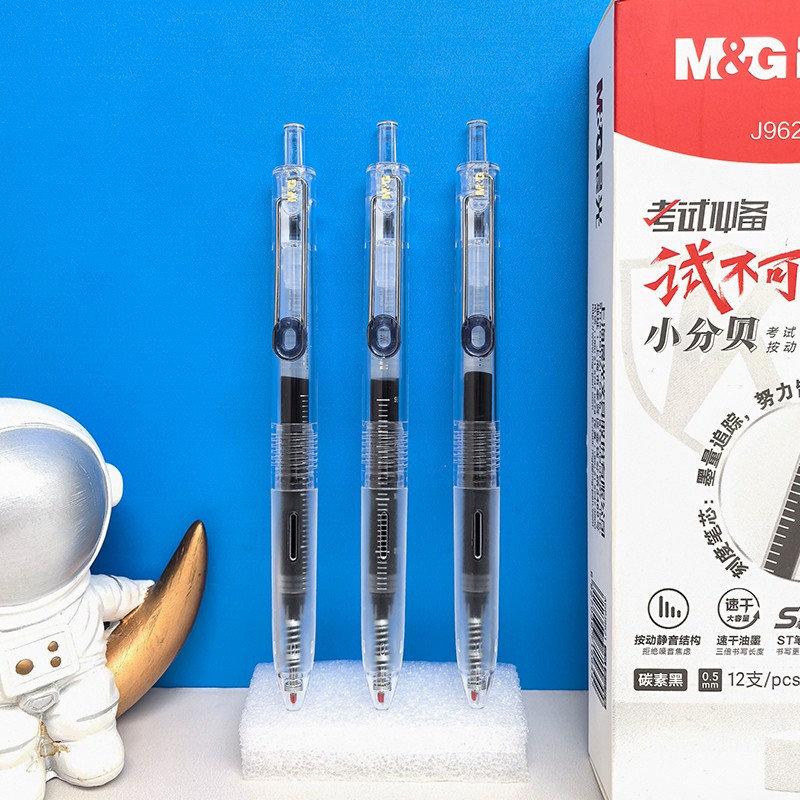 晨光 小分贝按动中性笔静音ST细尖锥0.5碳素黑笔蓝笔红笔速干简约中小学生大容量可视墨窗备考试J9621文具