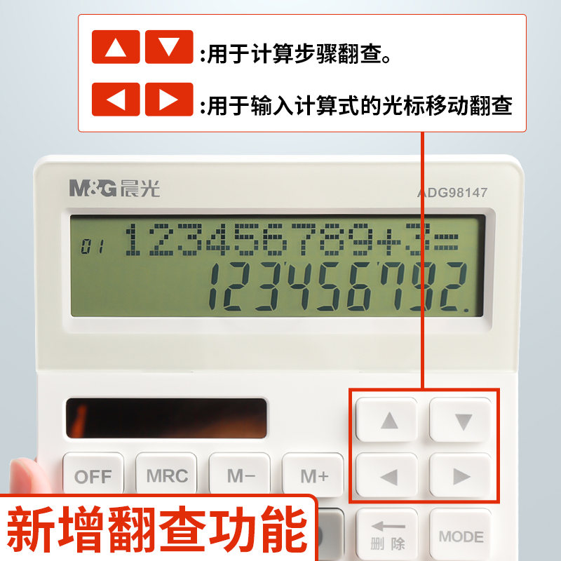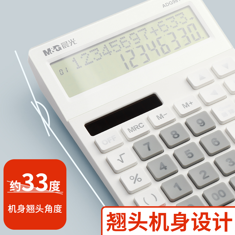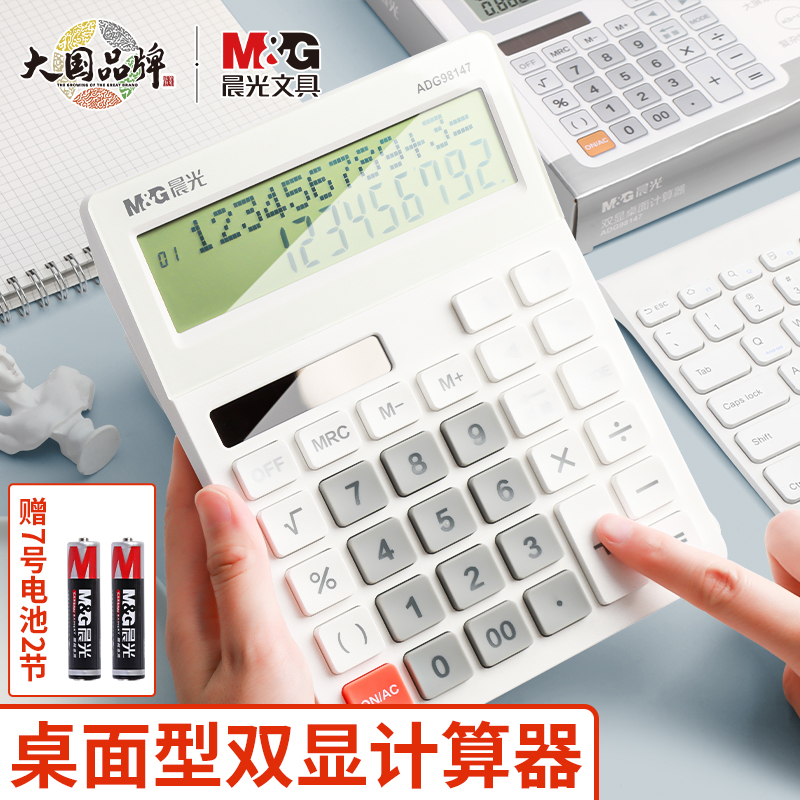 晨光计算器双显双电源太阳能电源高颜值大按键计算机12位大屏幕双行双屏财务办公会计四则混合运算计算多功能