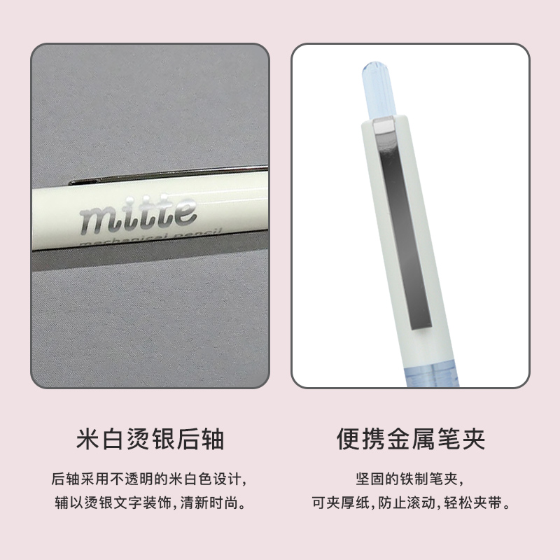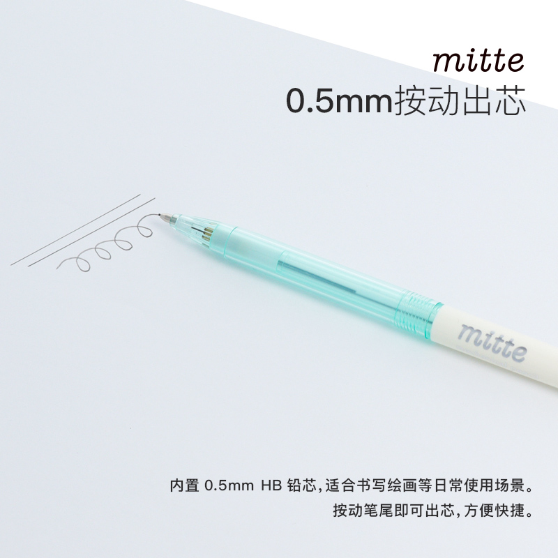 日本sunstar太阳星mitte彩色透明杆自动铅笔0.5mm按动出芯学生时尚简约外观小清新配色轻便不累手