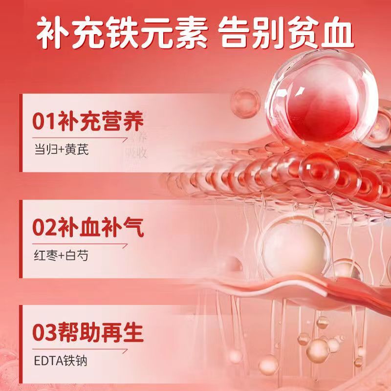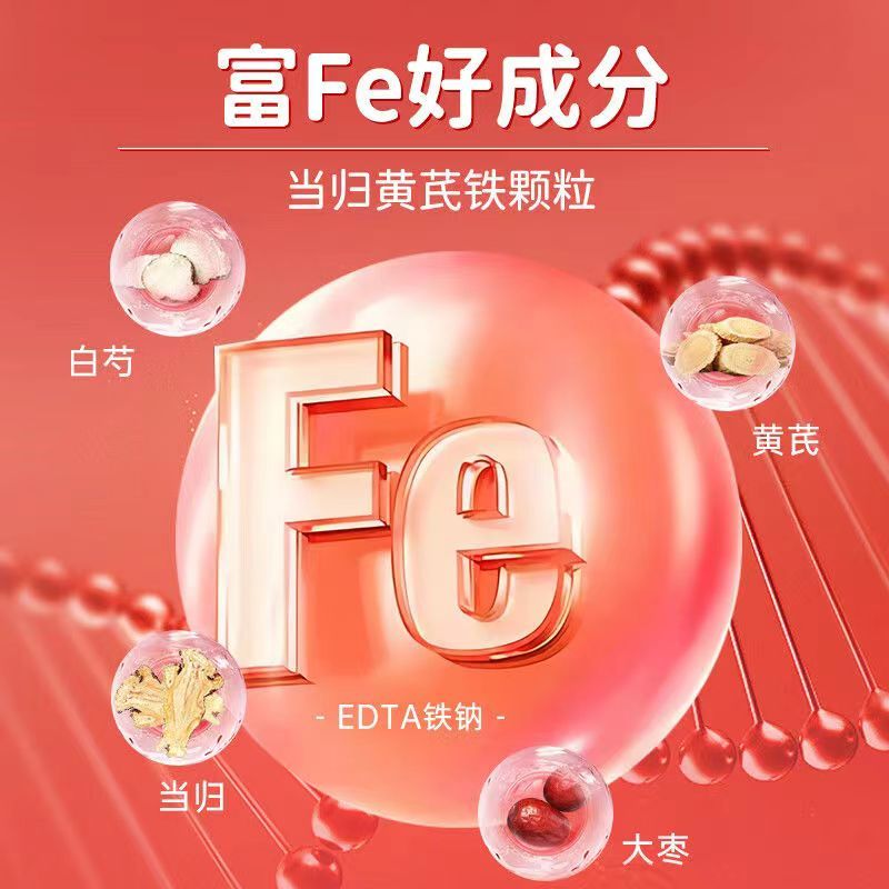 塑存麦金利当归黄芪铁颗粒补气血月经少量发黑引起的缺铁性贫血