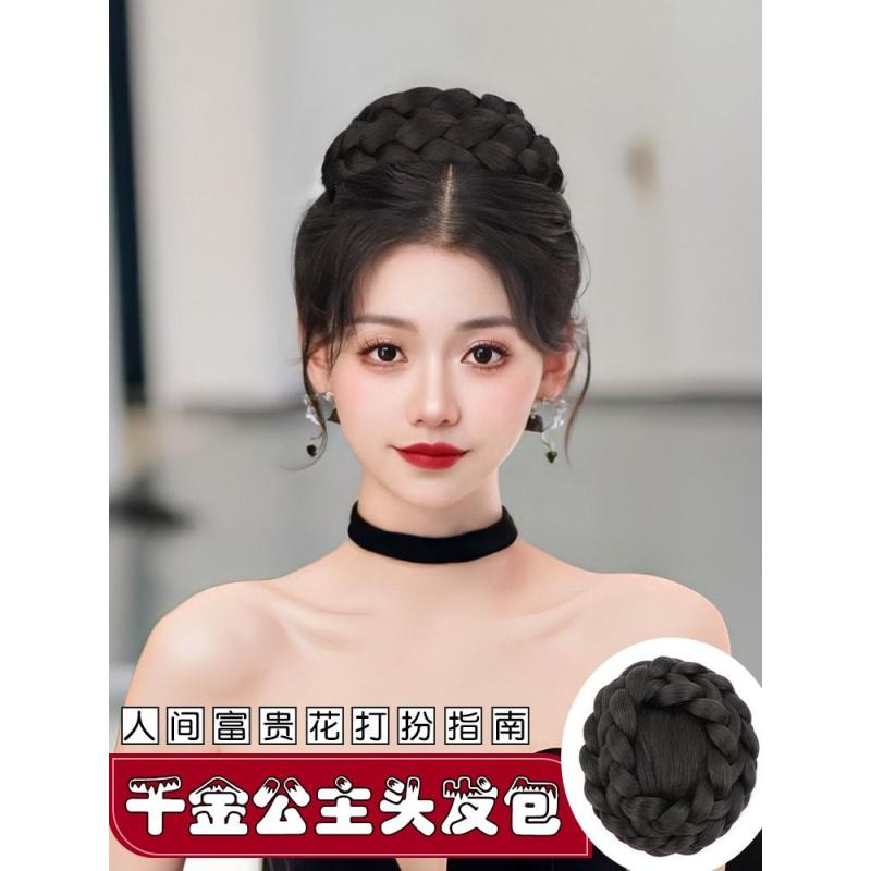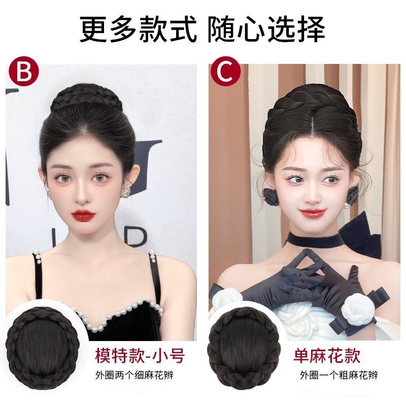 丸子头假发千金公主头饰婚纱造型赫本丸子头抓夹大发圈新娘假发包