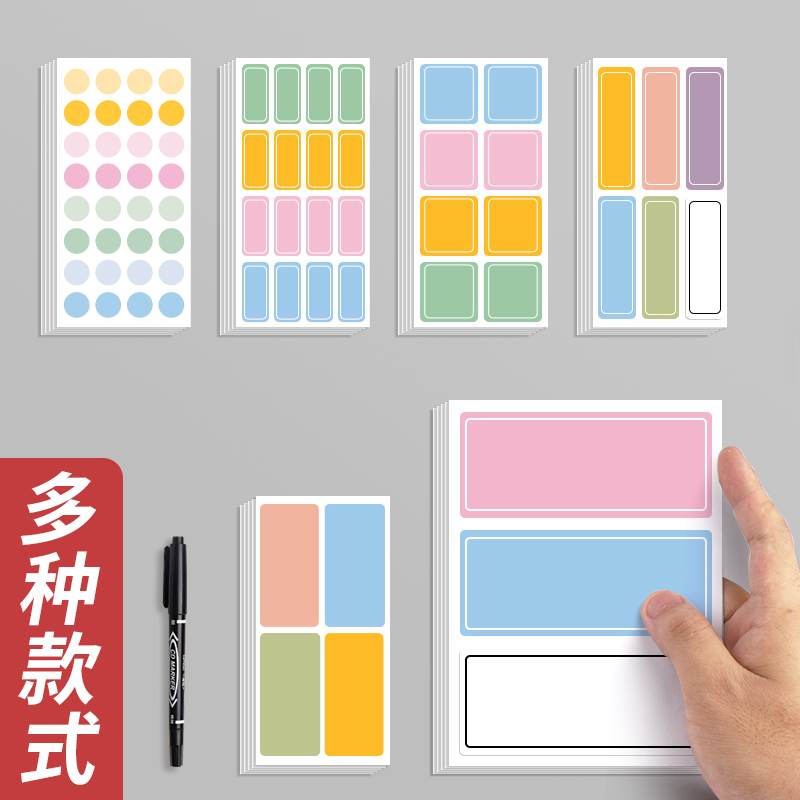 彩色标签贴纸便利贴全粘式防水便签贴纸可爱高颜值自粘性强全面贴小便签纸收纳分类标记指示记号贴大张长条贴